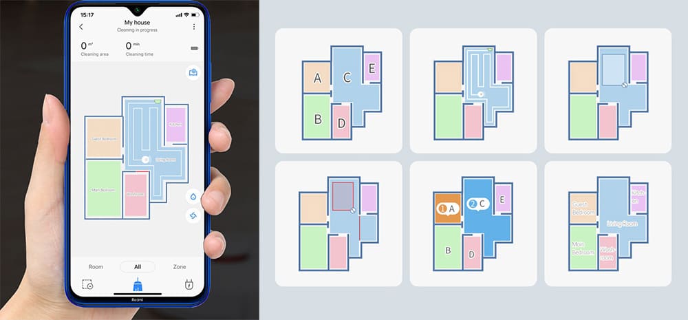 Есть возможность зонирования помещения и установки виртуальных барьеров. Запретные зоны обычно устанавливают в те места, где находится ковровые покрытия, дабы робот избегал их во время влажной уборки.