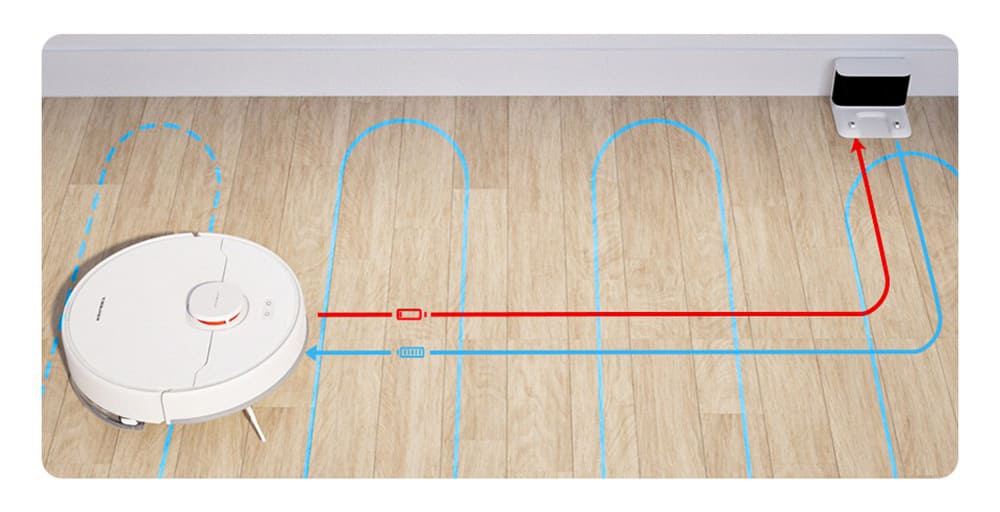 В комплекте с девайсом идет зарядная станция и блок питания. Робот пылесос автоматически ориентируется в помещении и ищет свою базу при постановке на зарядку. Время полной зарядки составляет около 6 часов.