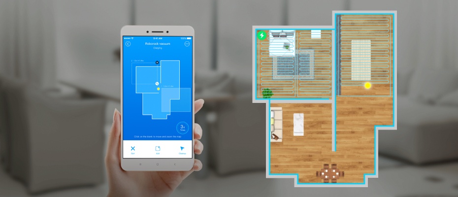 Как и многие умные устройства Xiaomi, Mi RoboRock Sweep One Vacuum Cleaner легко управляется с помощью приложения Mi Home. Задайте точки перемещения для пылесоса на экране смартфона, и он сам рассчитает точный путь до места назначения.