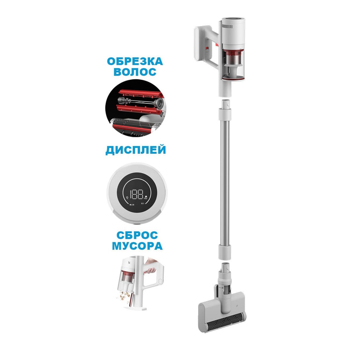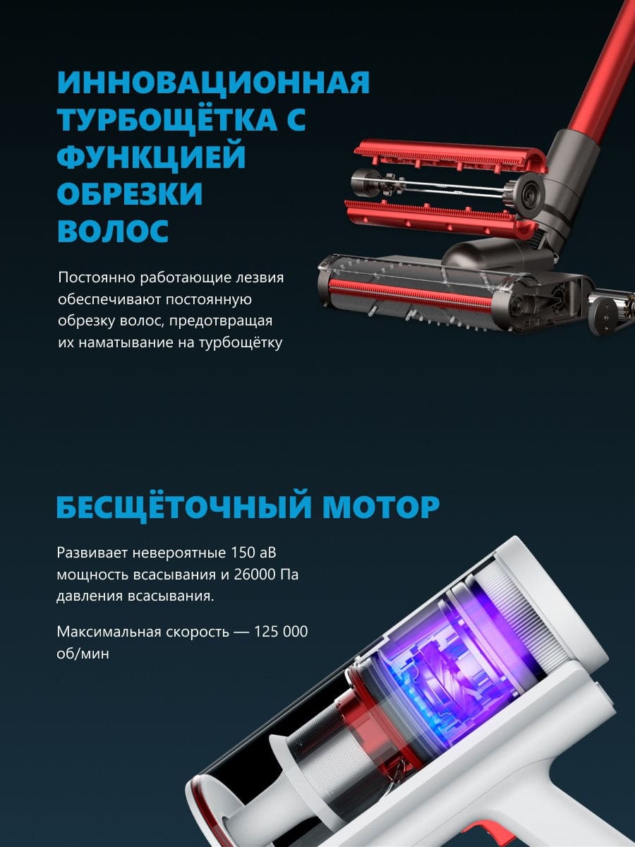 Мощный двигатель обеспечивает быстрое вращение для эффективной уборки. В центре валика расположено лезвие, разрезающее волосы, и защищает механизм от запутывания.