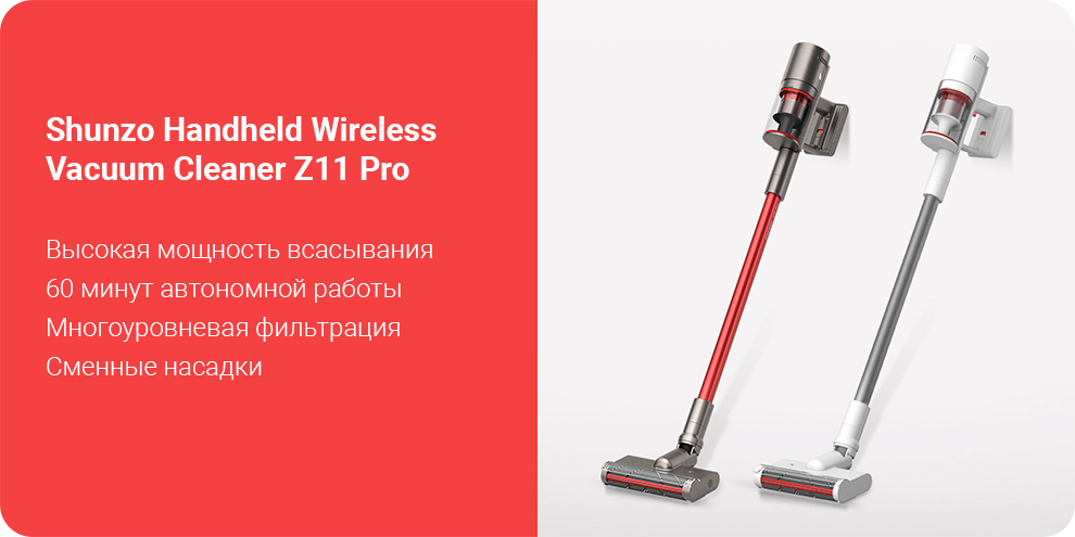 Xiaomi Shunzo Handheld Wireless Vacuum Cleaner Z11 Pro – это портативный пылесос нового поколения с мощным электродвигателем и низким уровнем издаваемого при работе шума. Гаджет отлично собирает мусор с любых поверхностей, с его помощью можно даже почистить диван. А благодаря небольшому весу и продуманной конструкции даже при длительном использовании пылесоса рука не устает. А добраться с его помощью можно до самых труднодоступных мест в помещении.