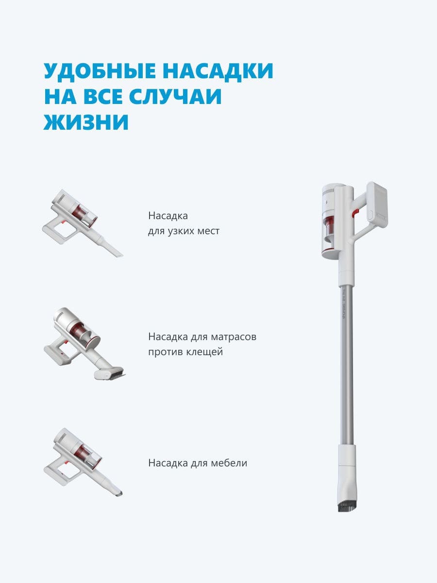 Модель Xiaomi Shunzo Handheld Wireless Vacuum Cleaner Z11 Pro имеет сменные насадки, что позволяет производить уборку любых поверхностей: ламинат, линолеум, плитка, ковер, диван, листва на улице, салон автомобиля и т.д.